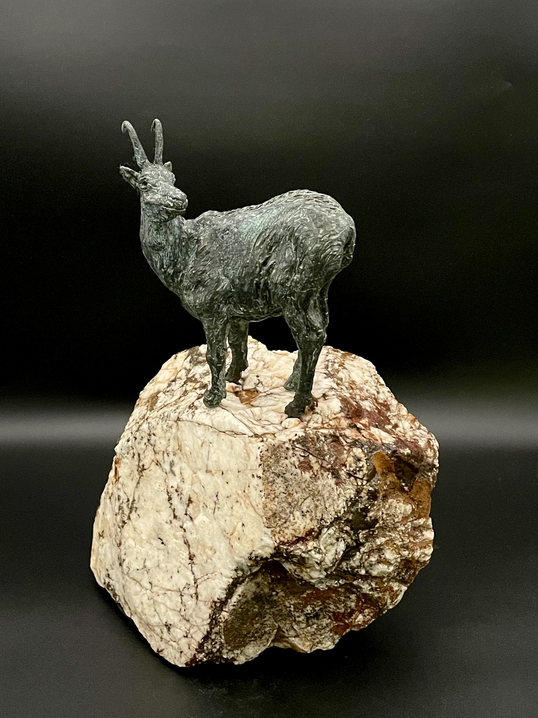 Rebeco en pendiente sobre Roca Natural blanca con manchas férricas